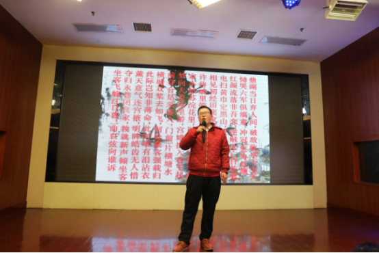 接下来,由制造技术部的郭强帅哥给我们带来了一段《圆圆曲》全程背诵、慷慨激昂。我们制造技术部不是吃素的,随便一个才艺便能号令全场,此次朗诵赢得了全场热烈掌声。