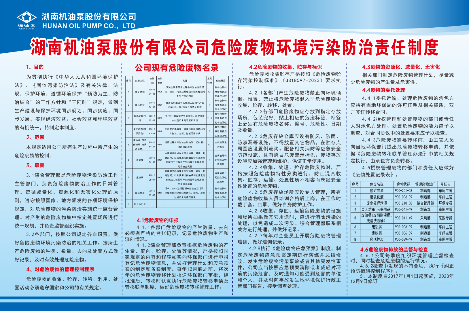 湖南机油泵股份有限公司危险废物环境污染防治责任制度